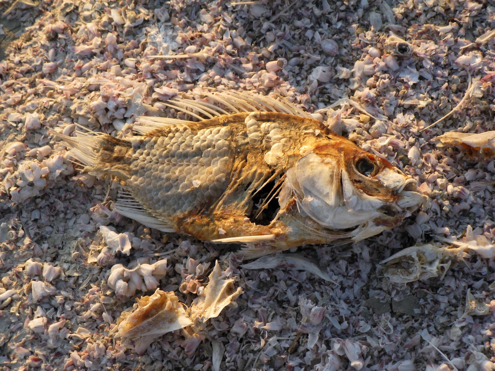 Salton Sea State Recreation Area offered an official fee-campground, but I opted for a free spot in a parking lot running between the highway and the beach. A half dozen RVS were spread out along the lot and I pulled up to a picnic table I could call my own. I examined the signs for rules about camping on the beach and saw nothing, so I pitched my tent on a beach comprised entirely of sea shell fragments, and set about having a very pleasant afternoon sitting and reading in the hazy sunshine in my t-shirt, no wind, on an enormous and very lovely lake shore. It was a bit odd having just fled a snowstorm earlier that morning.